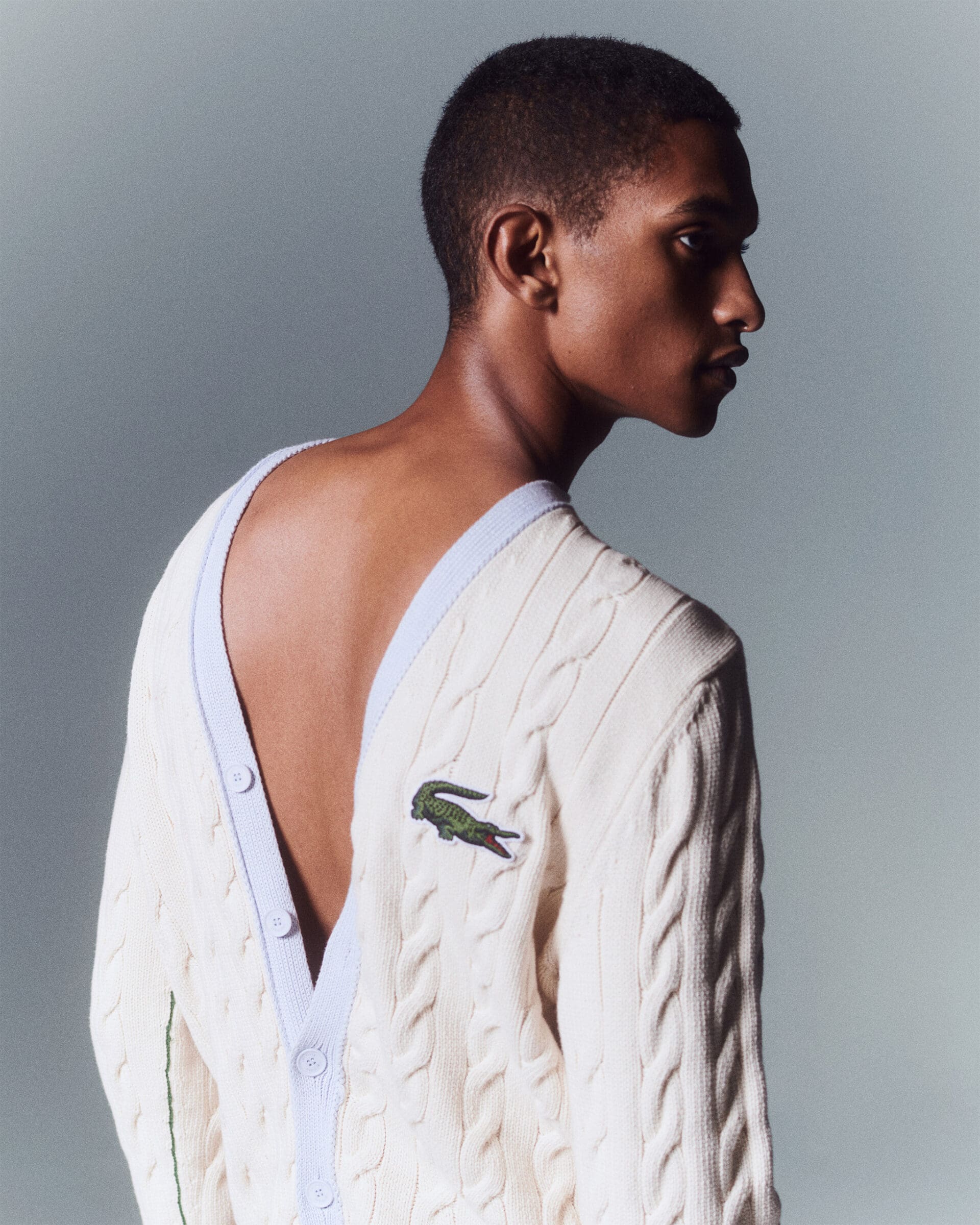 For example, suits, structured blazers, and long coats are highlighted as prominent figures in the collection which are each contrasted against sporty and breathable textiles. The brand’s signature polo shirts are also revisited in a more playful fashion as it features more exaggerated cuts in its construction. Among the more prominent materials used throughout the new release, Lacoste also integrates the use of knitwear throughout a variety of different garments, including cardigans, V-necks and zip-up sweaters.