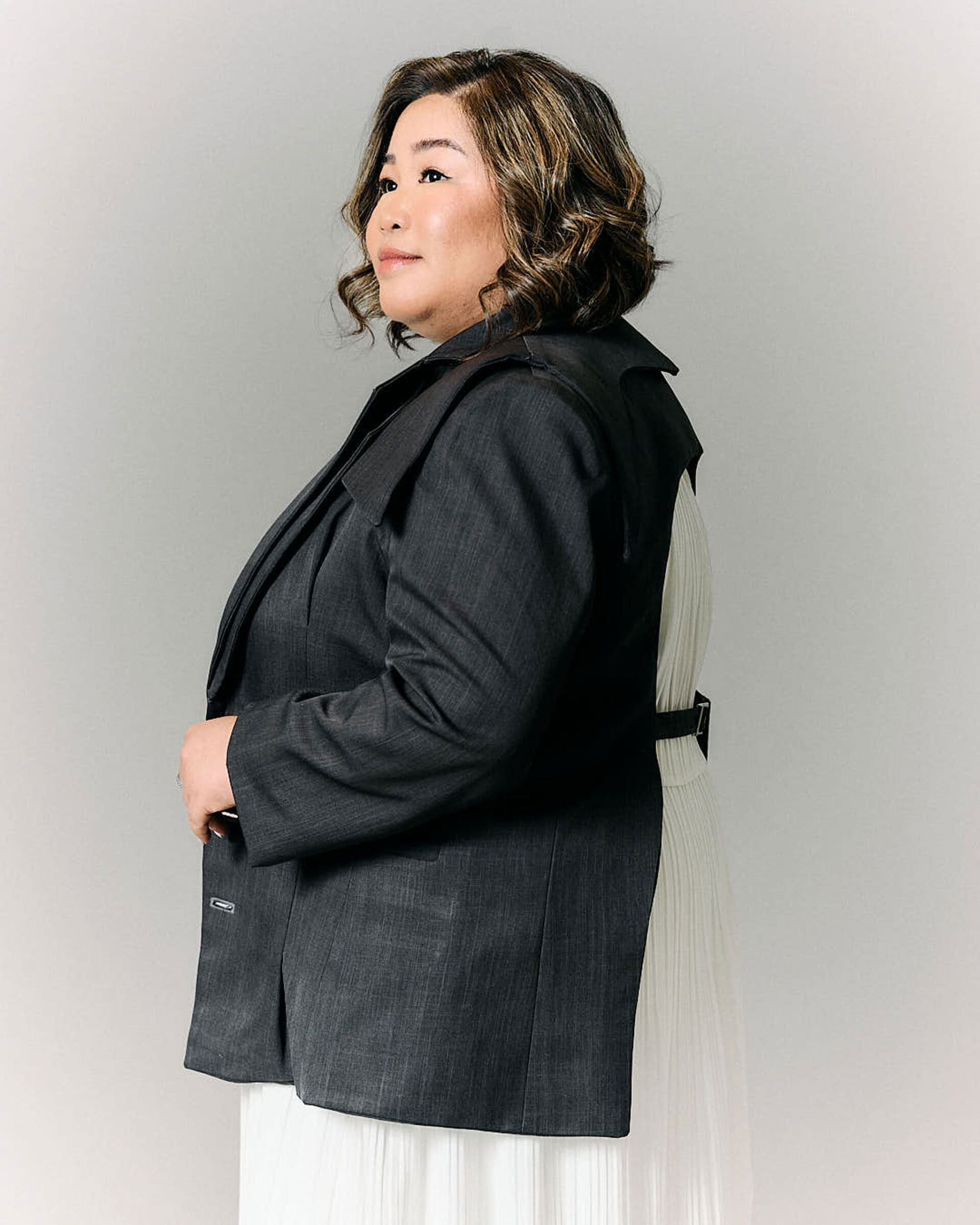 Shale wears a LILAH ROCHÉ cut-out blazer. Photographed by Karl King Aguña