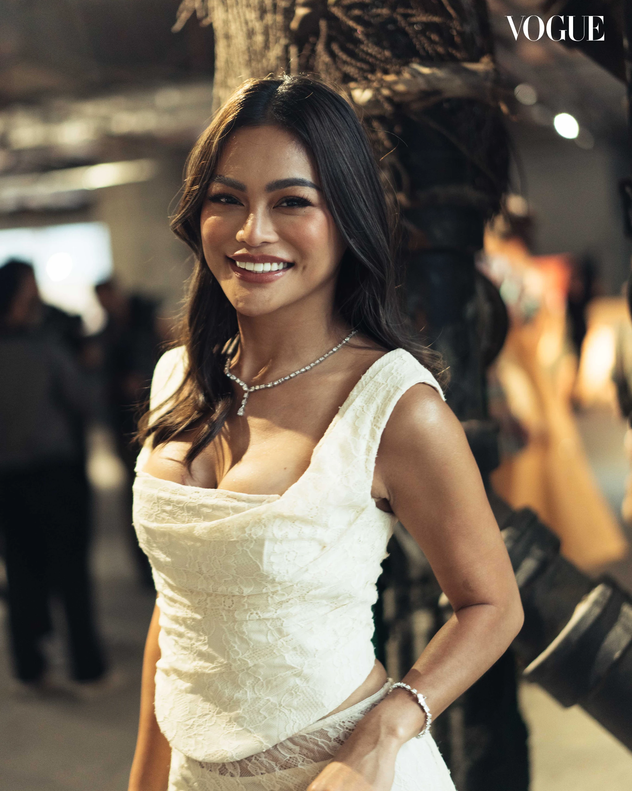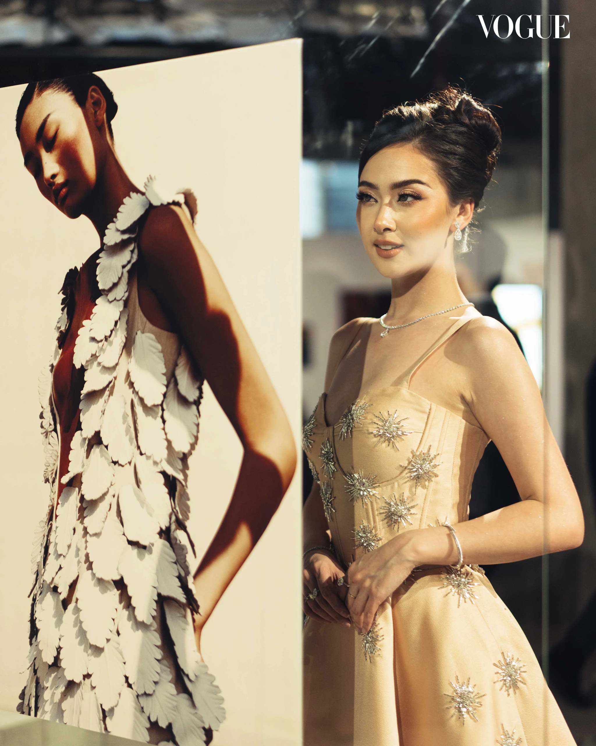 On the opening day of Vogue Threads Manila 2025, Theia Gems founder Kristine Agcopra invited beauty queens Anna Lakrini, Samantha Bernardo, and Katrina Johnson, as well as online creators Angel Dei and Aira Lopez, to tour the event floor while wearing their favored pieces from the brand.
