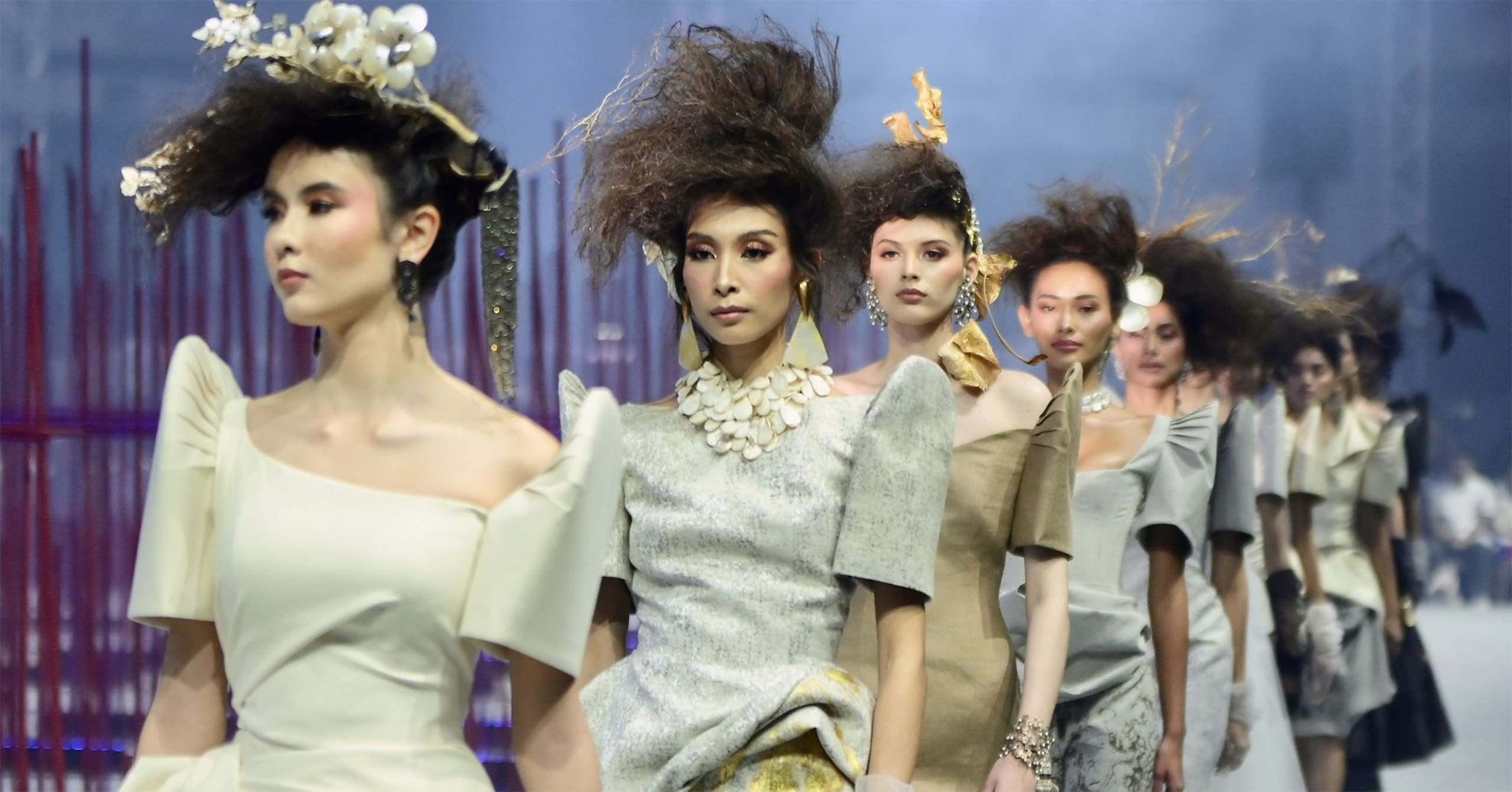 Three Filipino fashion designers come together at the SM Mall of Asia to unveil their reinterpretations of the terno during Independence Day