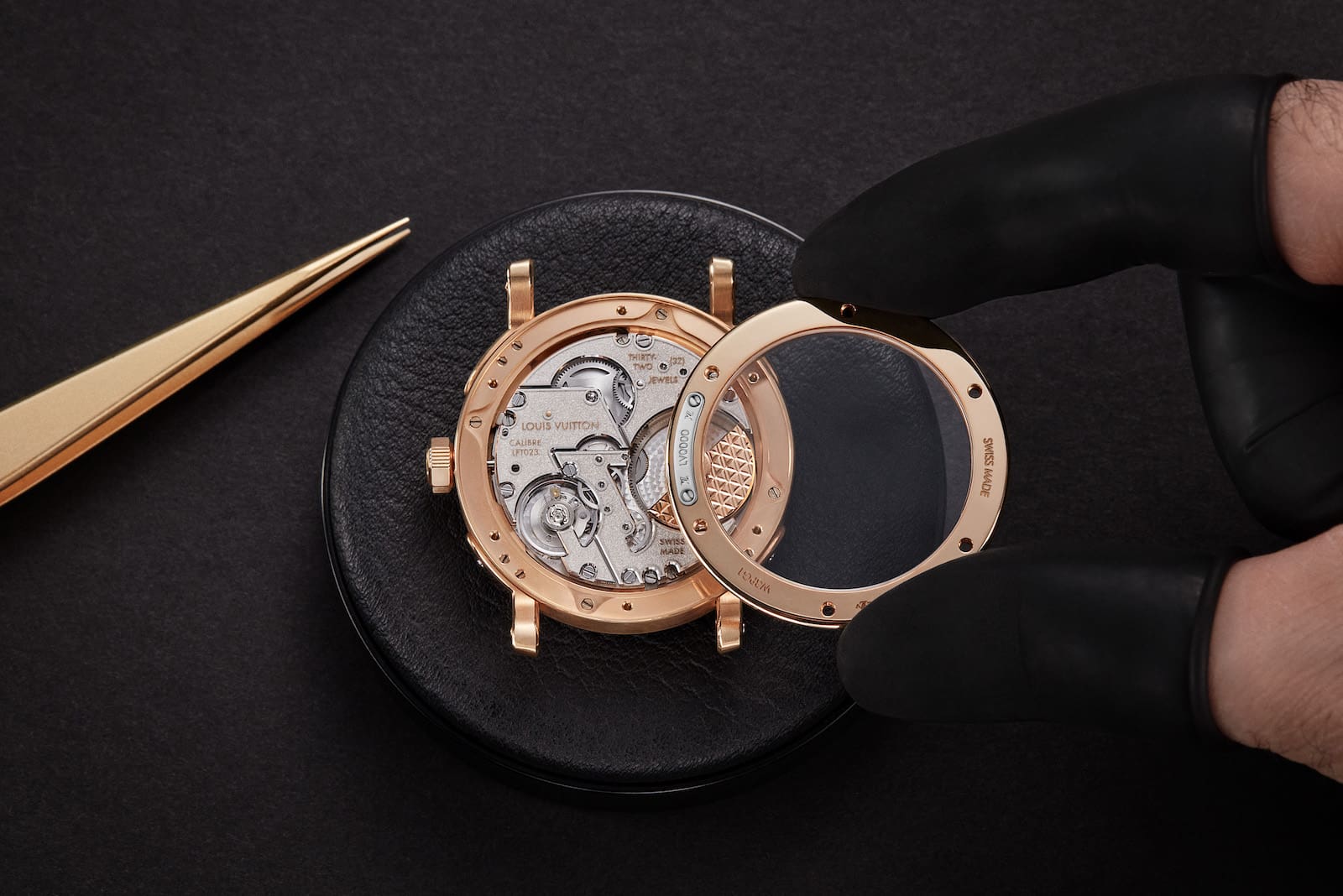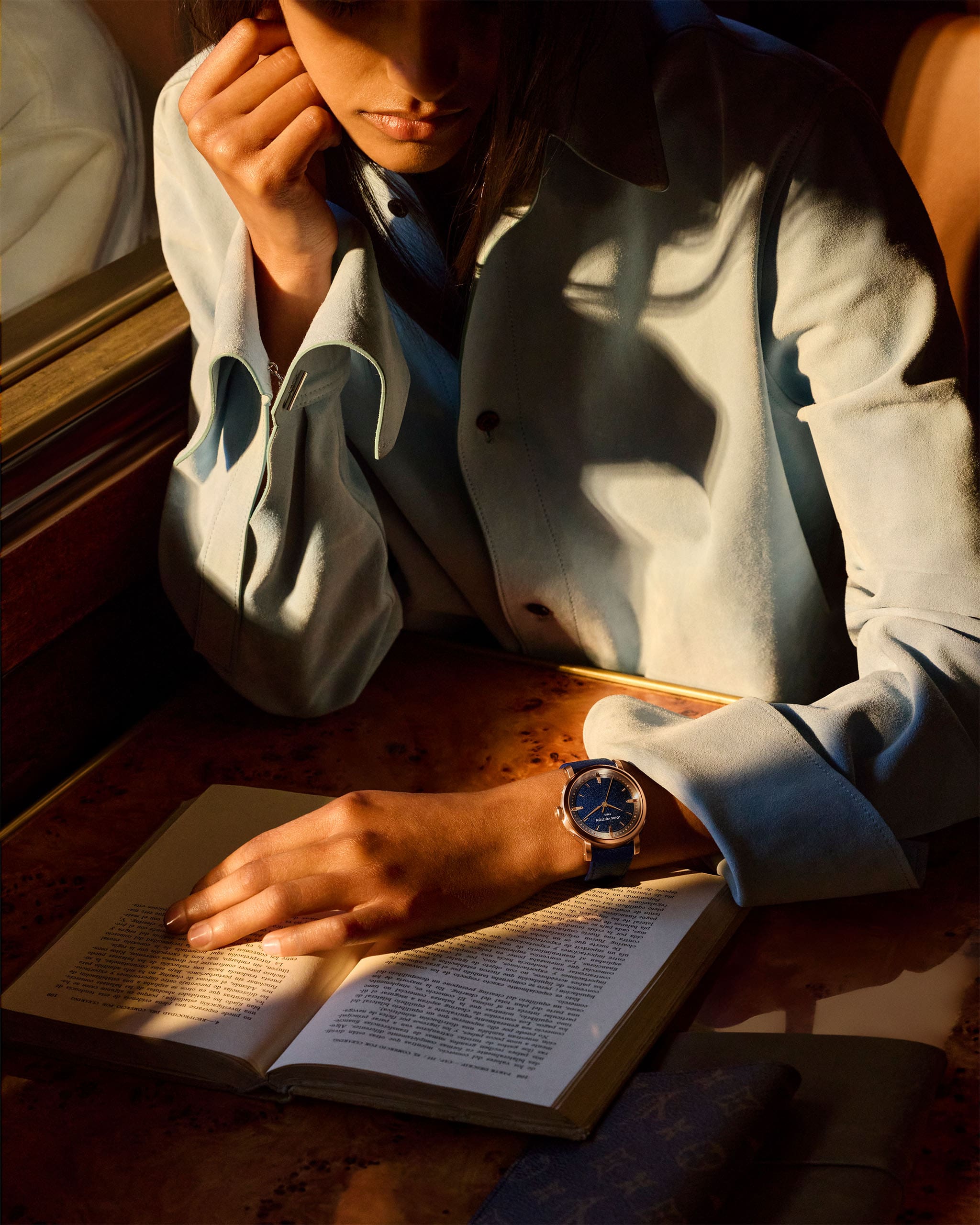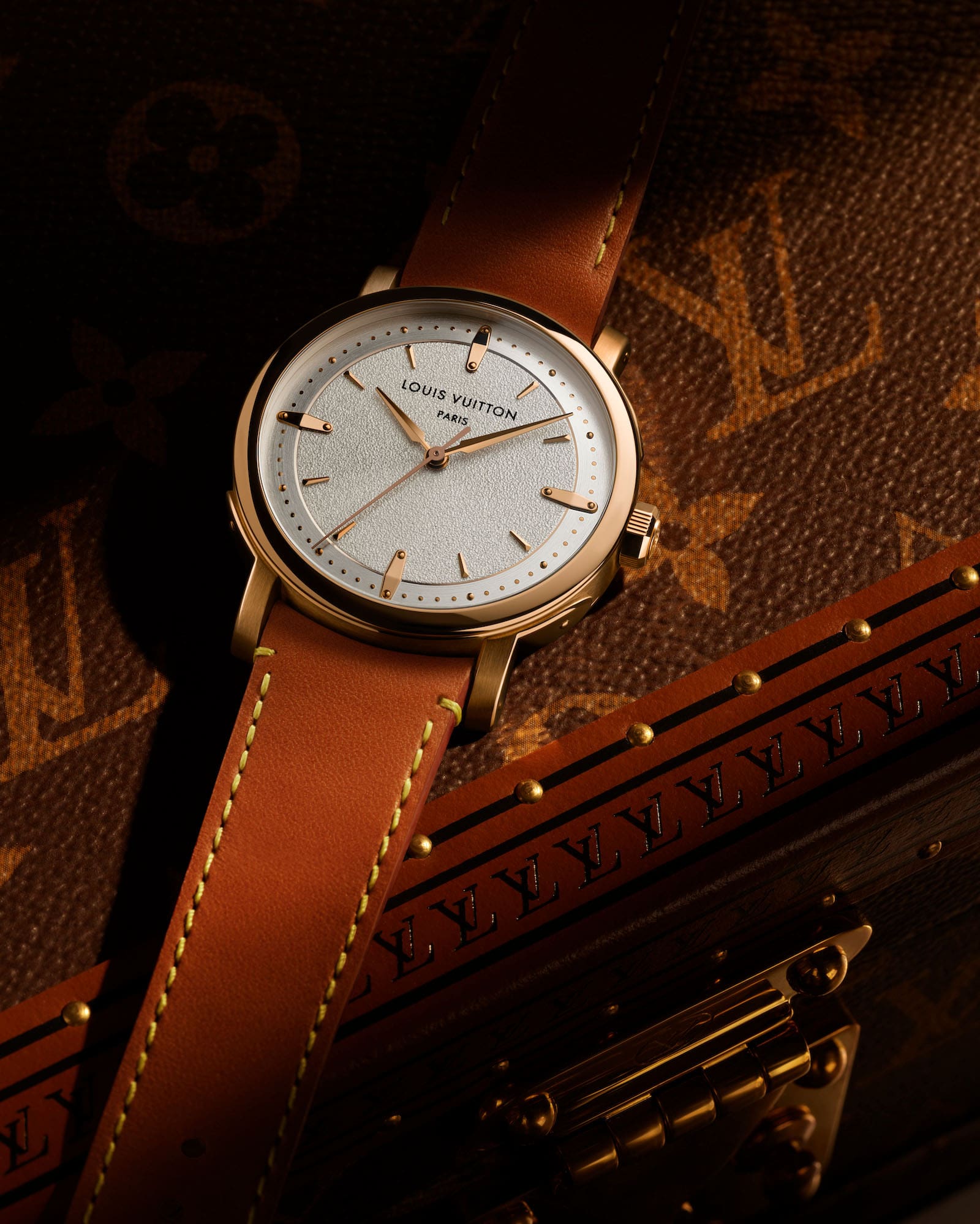 The rose-gold models, with their textured dials, exude a quiet elegance that is fit for daily wear. In contrast, the platinum models are molded in the textures of meteoric stones, that mimic the shades of natural minerals. Both variations are deeply rooted in Louis Vuitton’s legacy, drawing direct inspiration from the Maison’s trunks. The angled, riveted markers on the dials, reminiscent of trunk reinforcements, create a tactile and visual link to Louis Vuitton’s storied past.