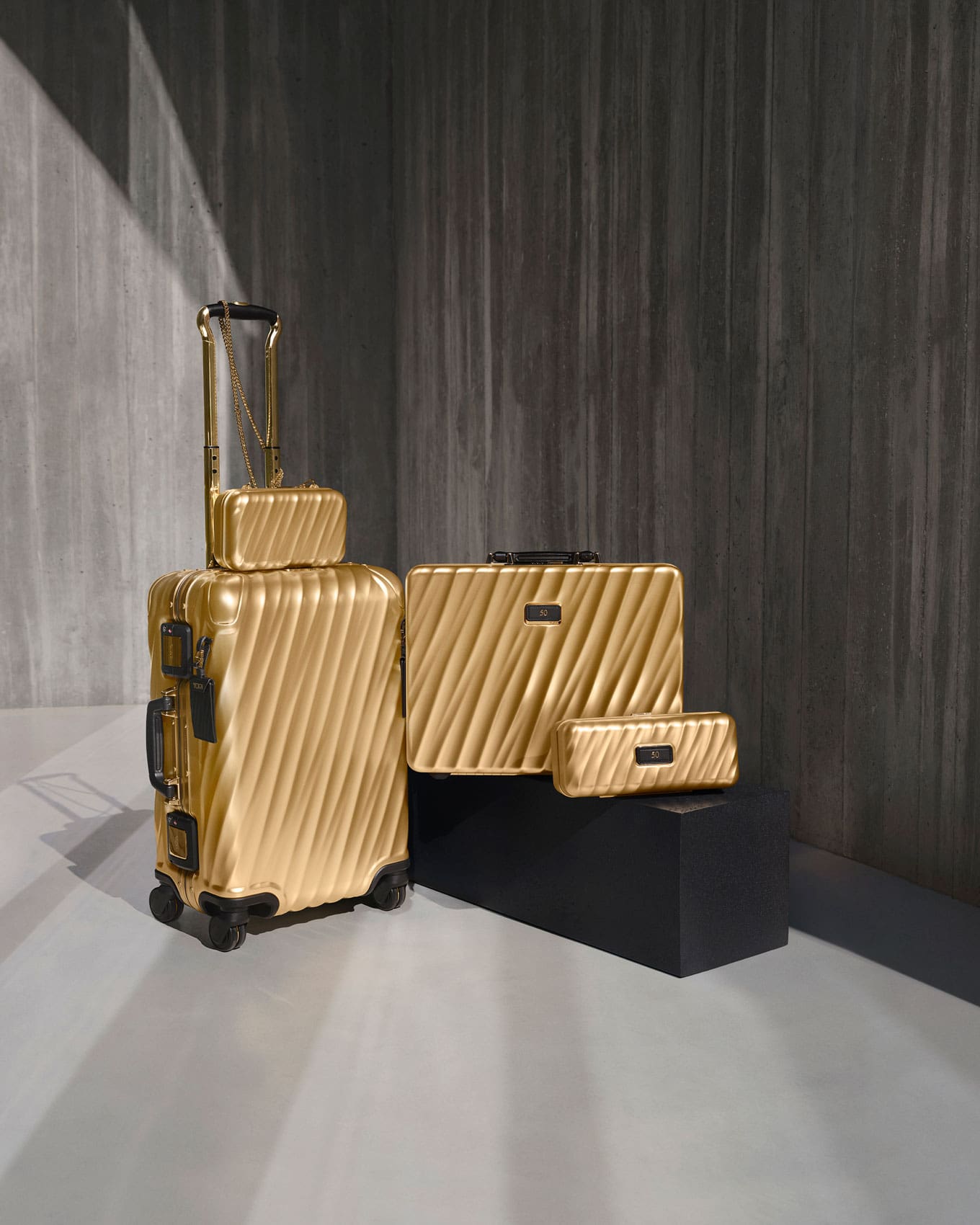 True enough, this preview heralded Tumi’s fifth decade as a travel and lifestyle brand by introducing a capsule collection featuring four of its 19 Degree Aluminum silhouettes, reimagined in a new Bullion Gold finish. The series also pays tribute to its namesake, a gold-plated ceremonial Peruvian knife, making the anniversary drop a nod to heritage and design evolution.