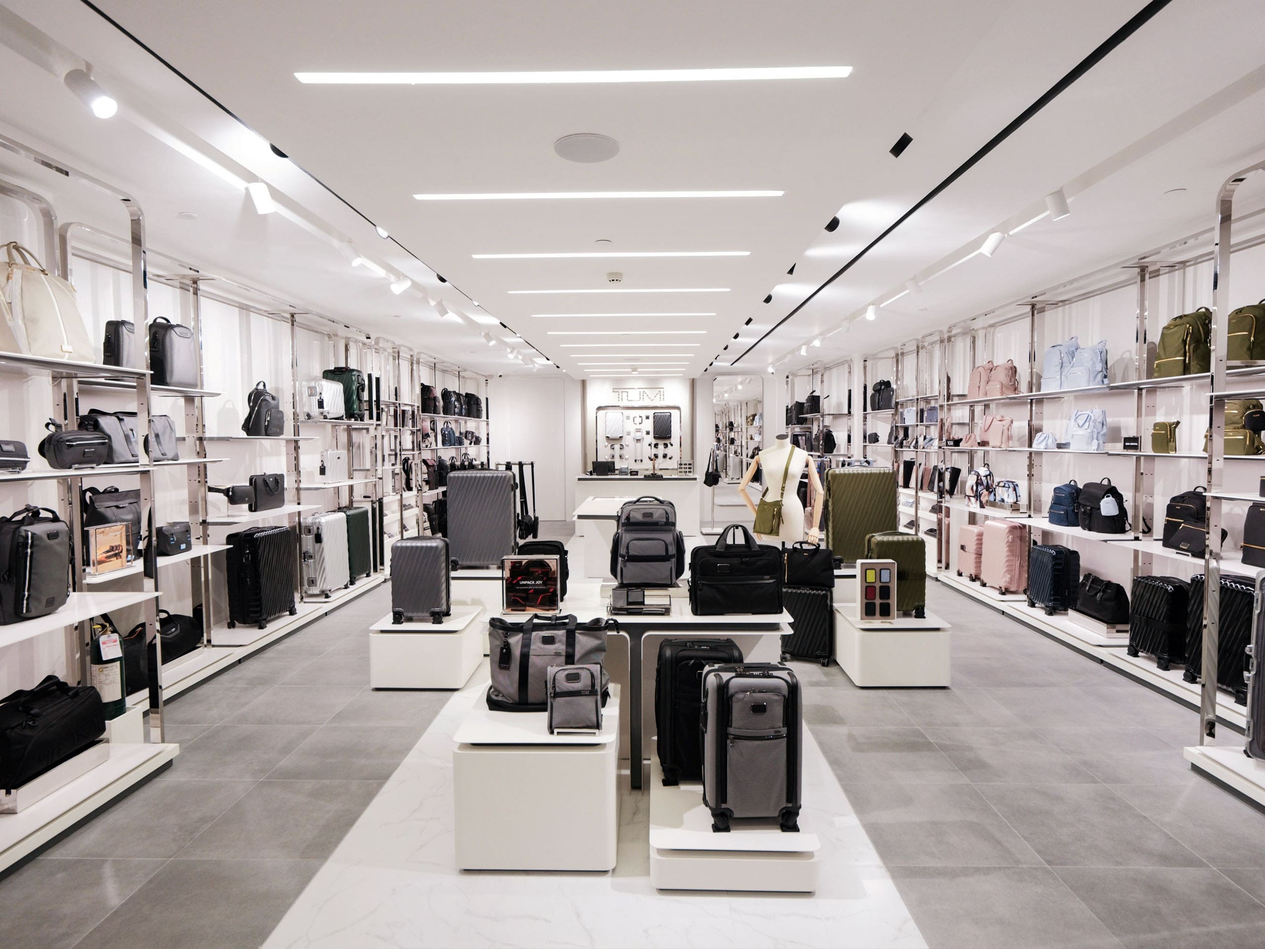 TUMI’s newest flagship store showcases the brand’s innovative design with a well-lit space and blending it with modern aesthetics