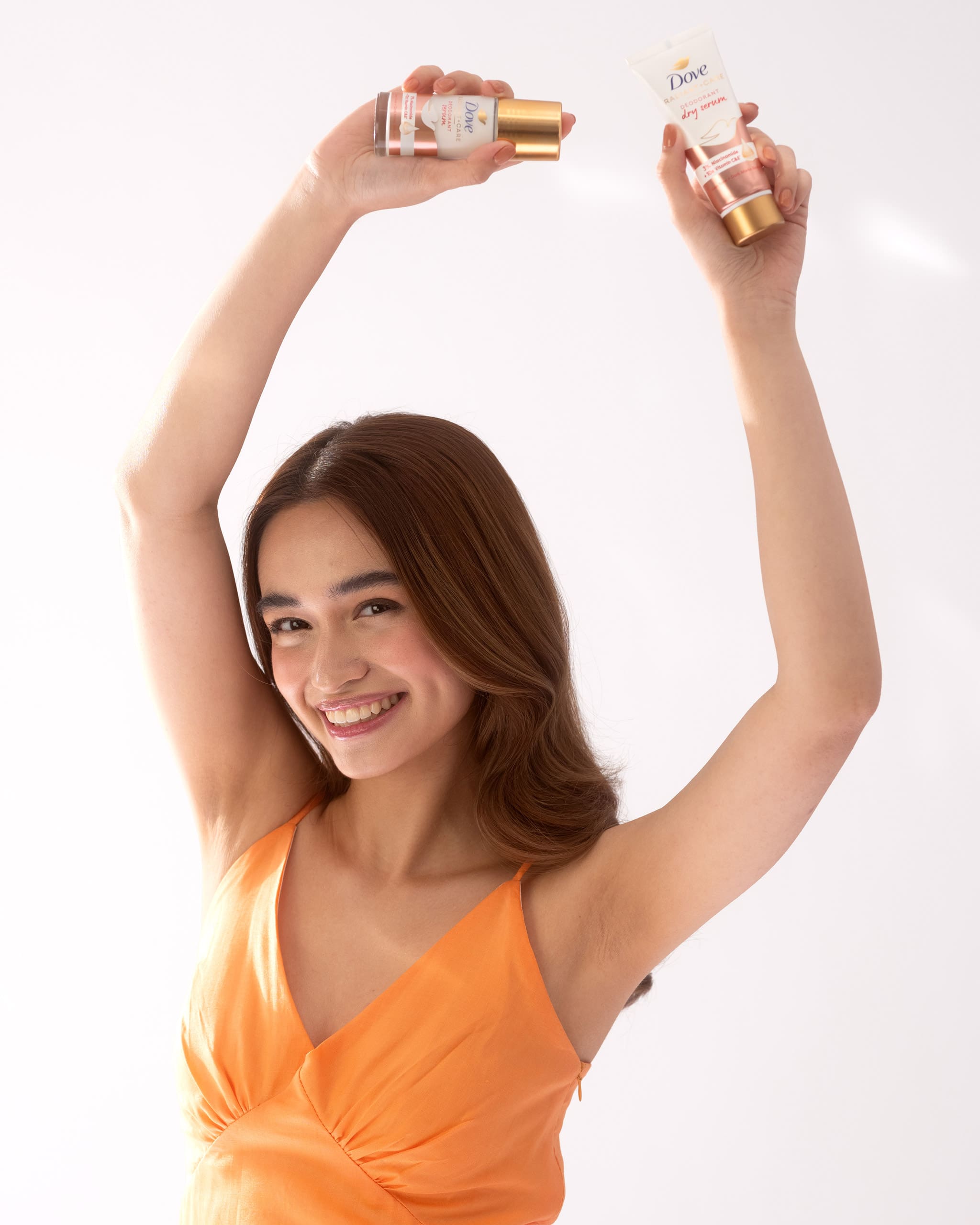 After her skincare routine for her face, Hannah applies skincare on her underarms to achieve radiant & smooth skin. Hannah uses the purple variant of the Dove Radiant + Care Deodorant Serum range formulated with 3% Niacinamide and Omega6. She mentions that the deodorant is ideal for addressing her chicken skin, on top of keeping her underarms protected from sweat & odor, allowing her to confidently raise her underarms especially during her workouts.