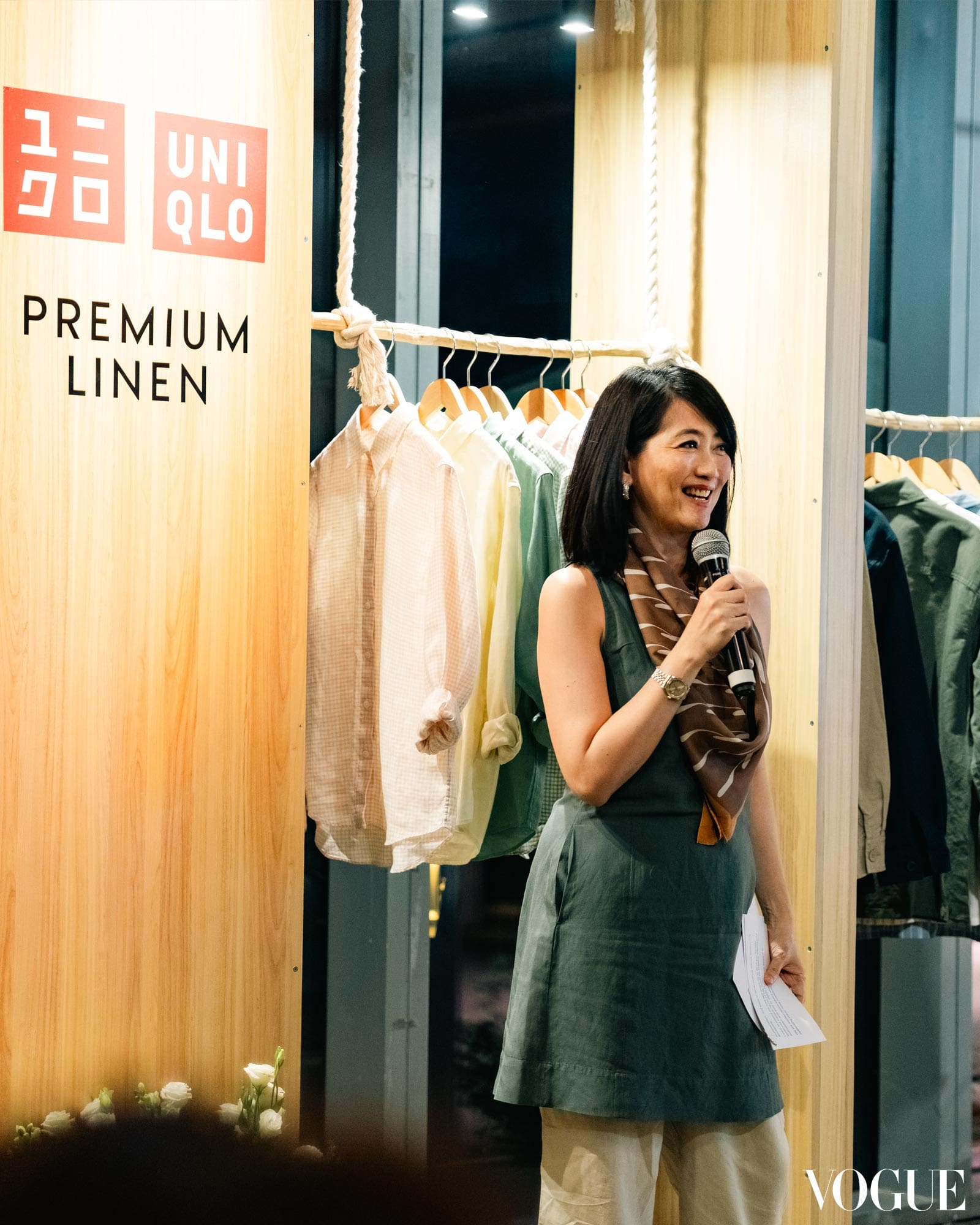 A key moment of the evening was “The Premium Linen Standard, A Vogue Conversation with UNIQLO” a fireside chat led by associate fashion features editor Ticia Almazan, featuring Quiñones, Curtis-Smith, and UNIQLO’s Head of PR and Sustainability Reiny Vergara.
