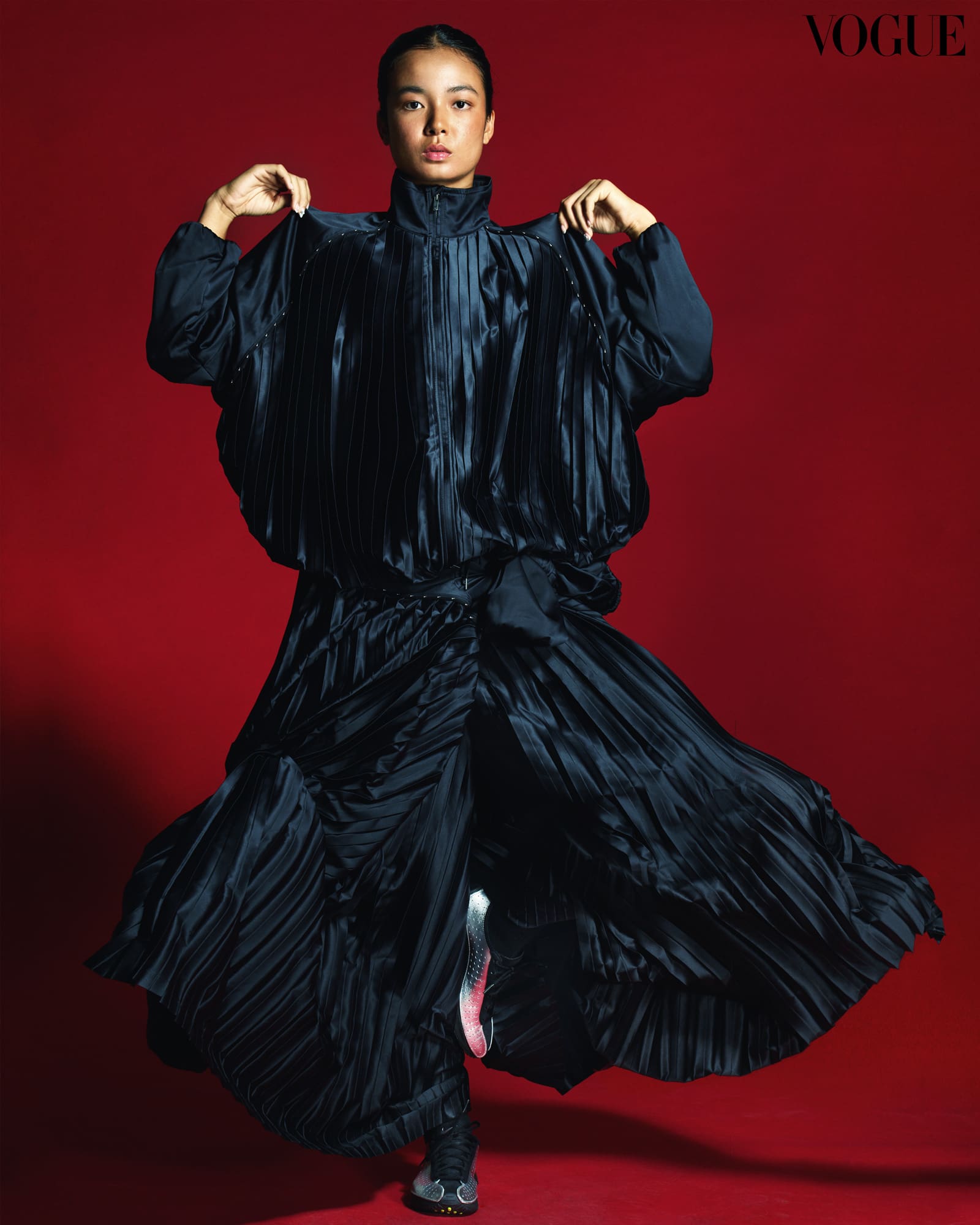 Alex Eala wears the NIKE Pleated Track Suit and NIKE Air Superfly shoes. Photographed by Mark Nicdao