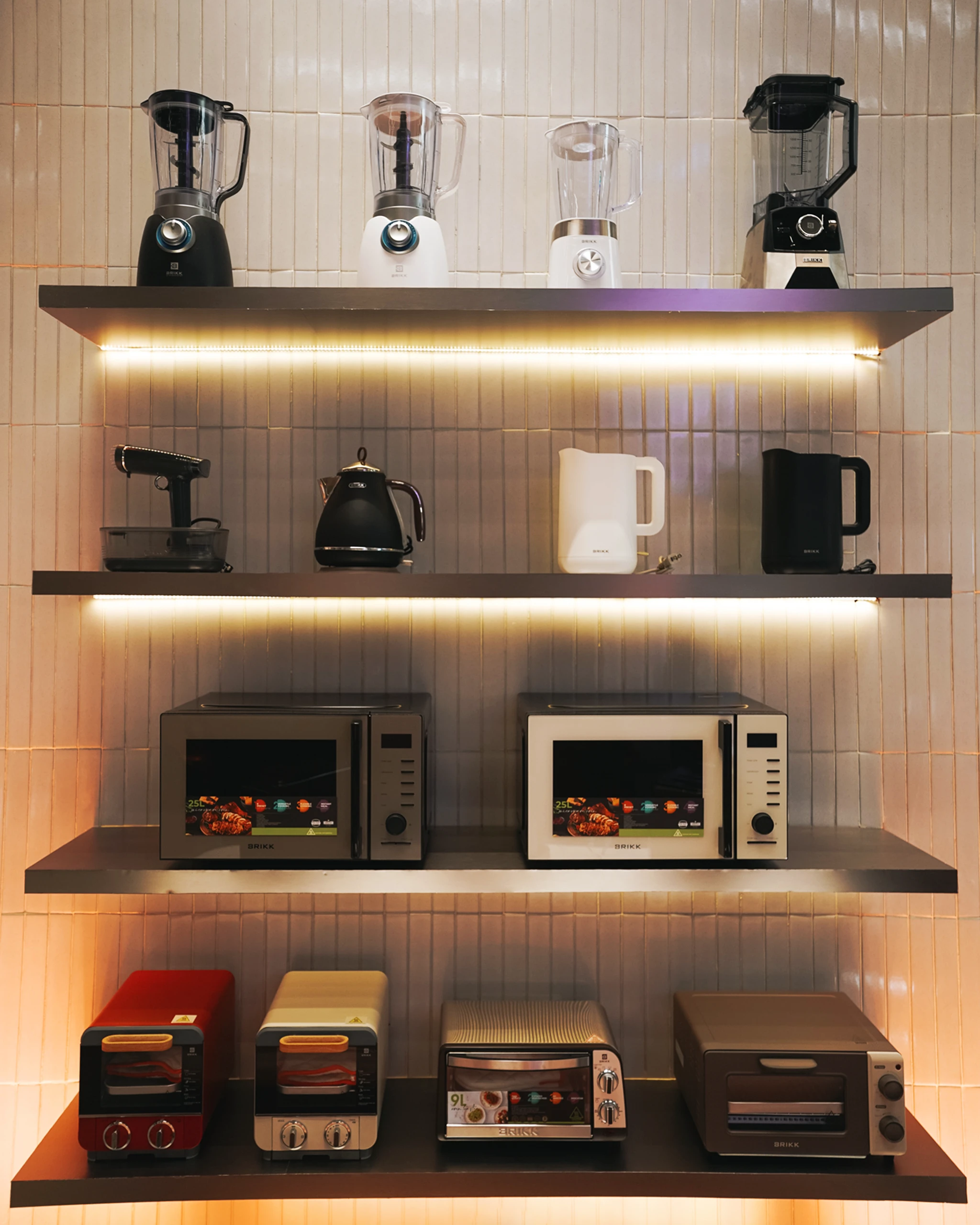 The red refrigerator door sets the tone for what the brand hopes to shift in the local market: the perception that appliances belong quietly in the background. During the launch of the Brikk Experience Store, called The House of Chrome, guests such as Small Laude, Gabbi Garcia, Michelle Dee, Laureen Uy, Sofia Andres, Daniel Miranda, Camille Co, and Jaz Reyes saw the brand’s visual language firsthand: refrigerators displayed in glass pods, blenders, coffee makers, and microwave ovens arranged on shelves against ceramic tiles, and toasters, rice cookers, and fans positioned in front of perforated metallic walls. These pieces lean into color, shape, and personality without sacrificing everyday utility.