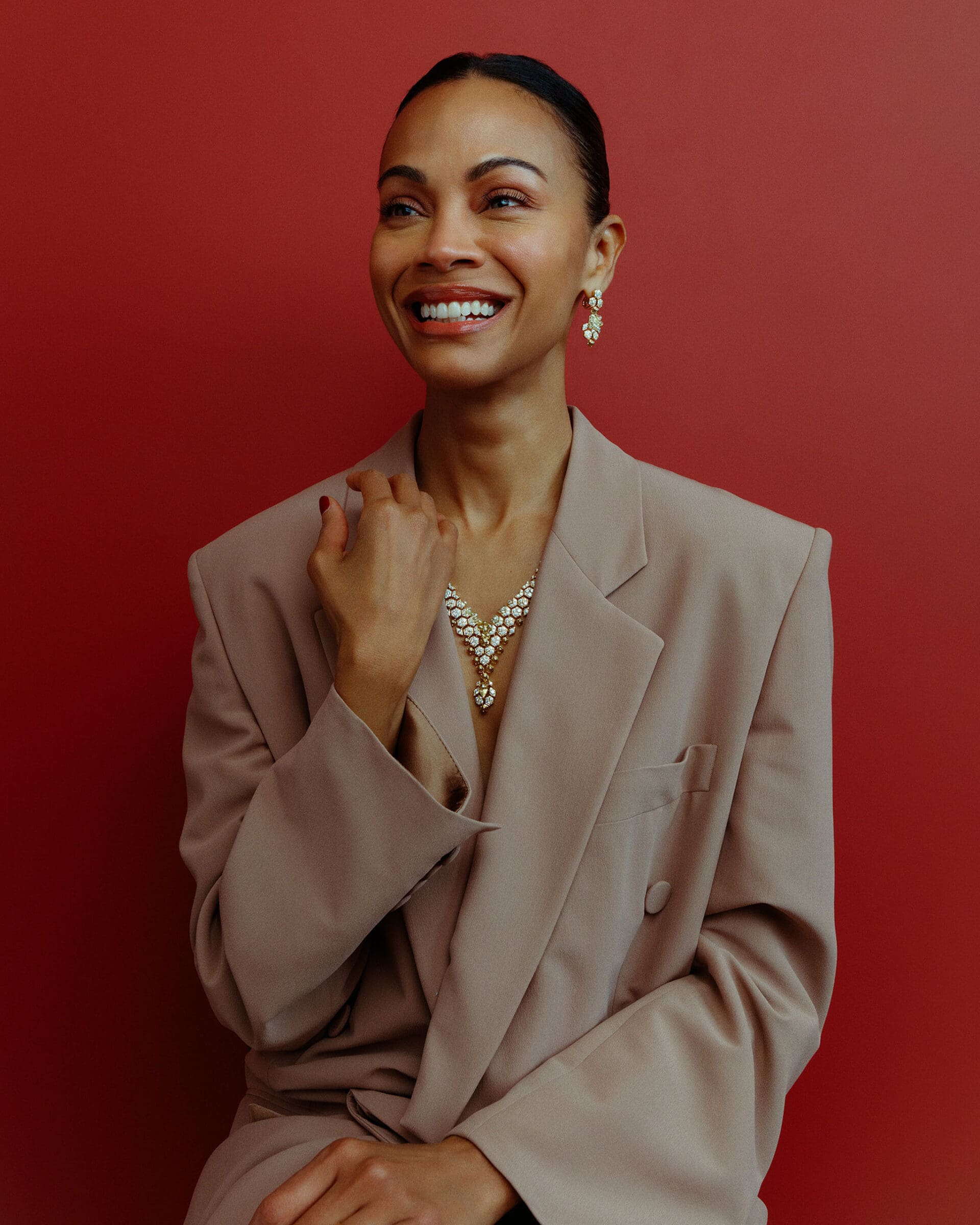 In preparation for the 2025 Golden Globes, the 46-year-old flew to Cartier’s 13 Paix boutique in Paris with her stylist Petra Flannery. There, they met Alexa Abitbol, the Maison’s High Jewelry Workshop director, for a consult, leading to Saldaña personally choosing the golden Melis set, from the Nature Sauvage High Jewelry Collection, to be the centerpiece of her look.
